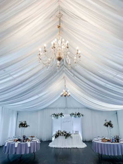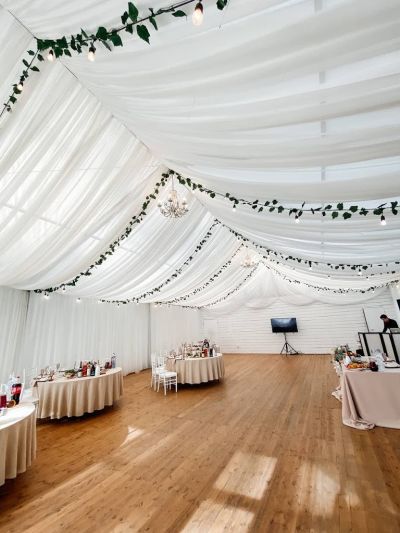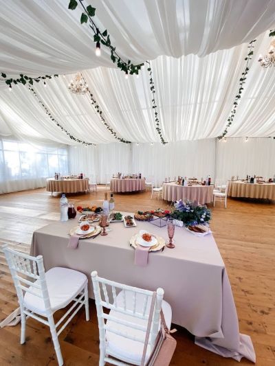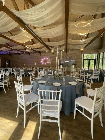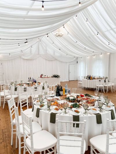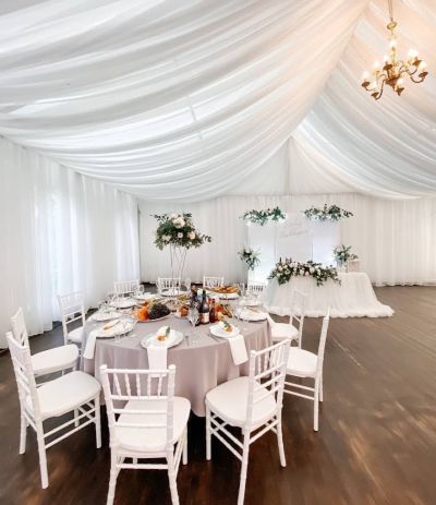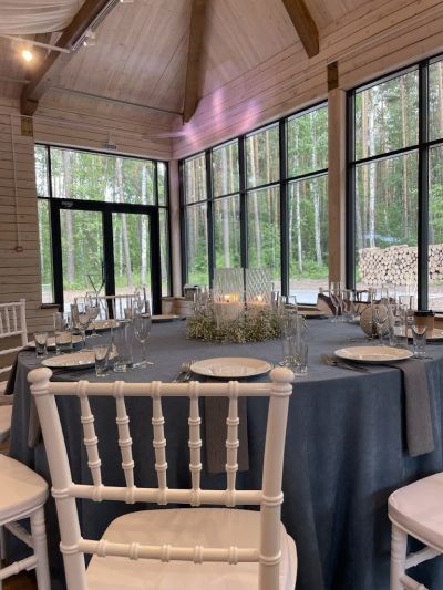Площадка подходит для выездной регистрации. Текстиль и посуда для сервировки на выбор.