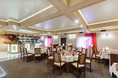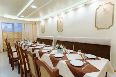 Банкетный зал для различных мероприятий с продуманным интерьером и высоким уровнем комфорта. В заведении можно отдохнуть и насладиться вкусными блюдами европейской кухни. Бар предлагает широкий выбор напитков.