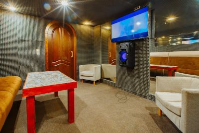 В зале большие TV-экраны, высокоскоростной Wi-Fi, проектор. Кроме этого, профессиональное световое и звуковое оборудование.