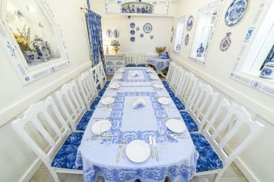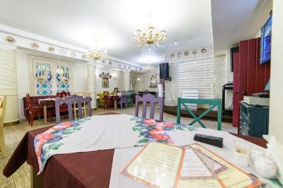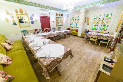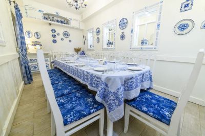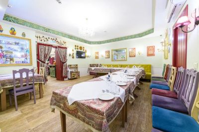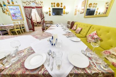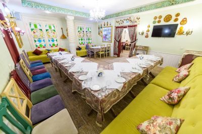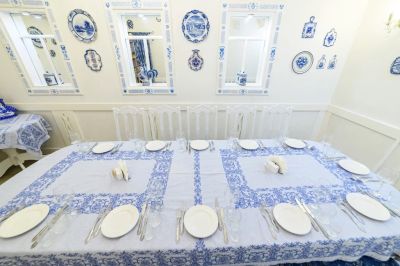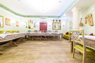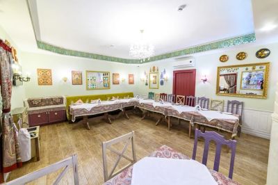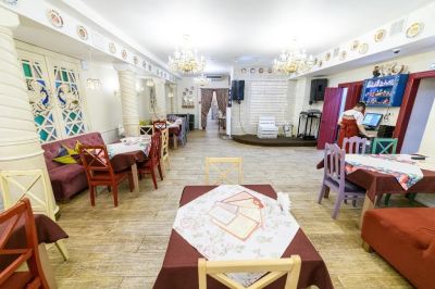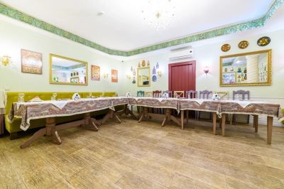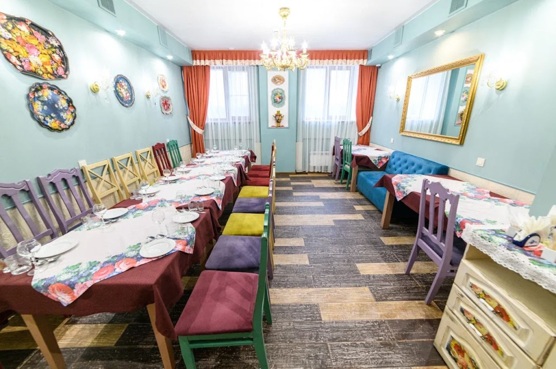Это просторный банкетный зал с профессиональной сервировкой столов, изысканной посудой, стильным интерьером и приветливым персоналом.
