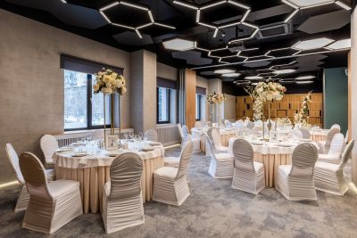 Дополнительно можно заказать торт, организовать выездную регистрацию, использовать собственный алкоголь или безалкогольные напитки.