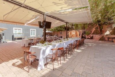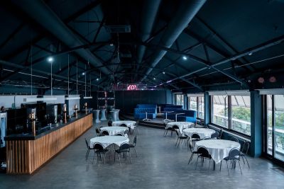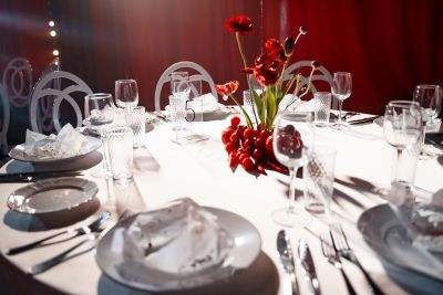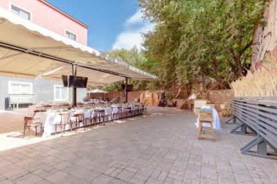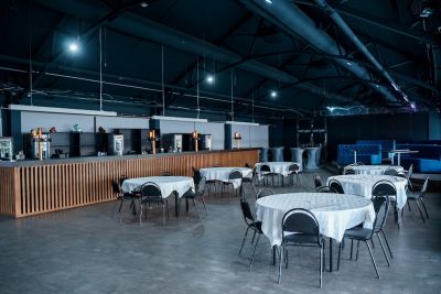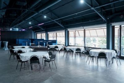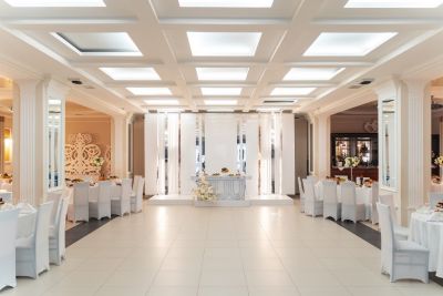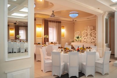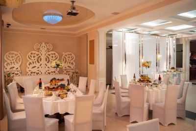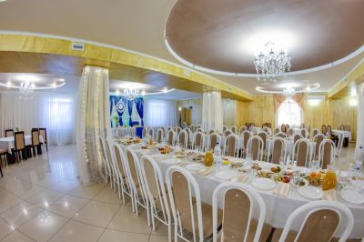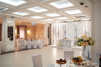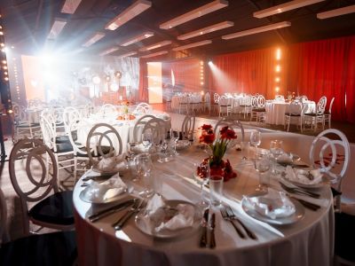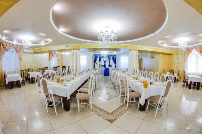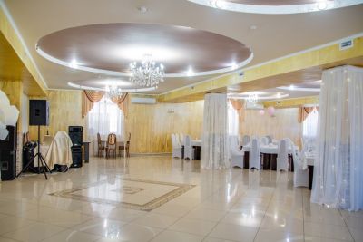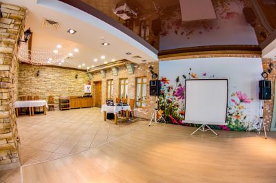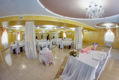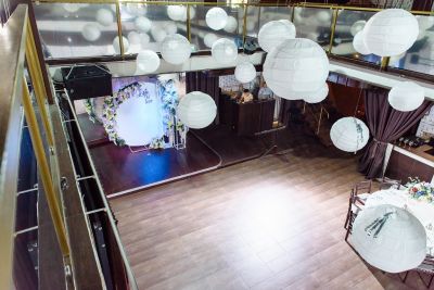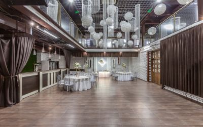 Здесь есть всё необходимое для комфортного проведения праздника: сцена для выступлений артистов, TV-экраны для трансляции праздника, wi-fi, welcome-зона для встречи гостей, детская комната для малышей.