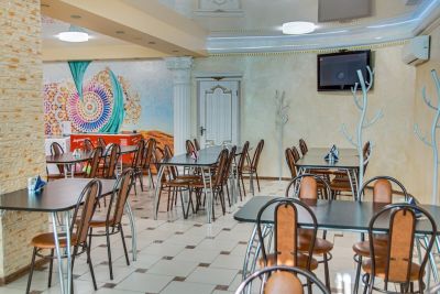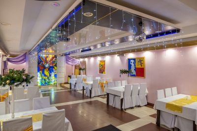 Площадка разделена на несколько зон: банкетный зал, кафе и ресторан. Каждая из них имеет свою неповторимую атмосферу. Широкий выбор блюд и напитков, есть собственная кондитерская.