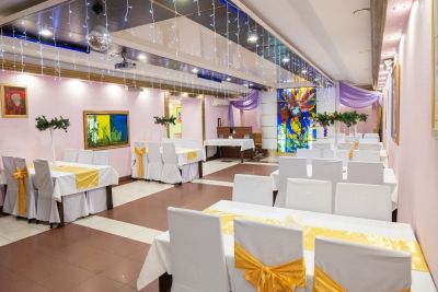 Для удобства гостей имеется собственная парковка. Также можно воспользоваться услугами фотографа, видеографа, диджея, ведущего, оформлением зала и многим другим.