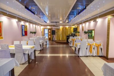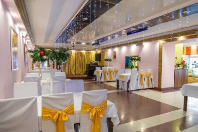 Здесь есть музыкальное оборудование, проектор и TV-экраны, Wi-Fi. Можно провести выездную регистрацию. Для маленьких гостей есть детское меню и уголок с игрушками.