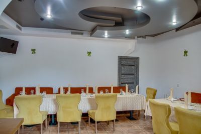 Здесь есть возможность проведения фейерверков, оборудована выделенная парковка. В зале имеется музыкальное оборудование, велком-зона с TV-экранами.