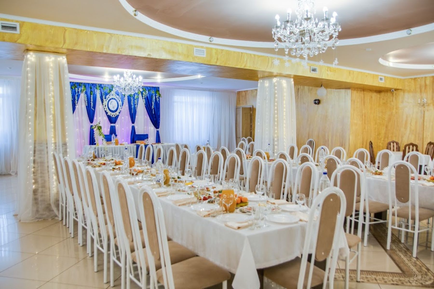Просторный танцпол, который позволяет устроить зажигательные танцы. Есть возможность провести фейерверк или организовать живую музыку. Кроме этого, можно заказать услуги фотографа или видеографа.