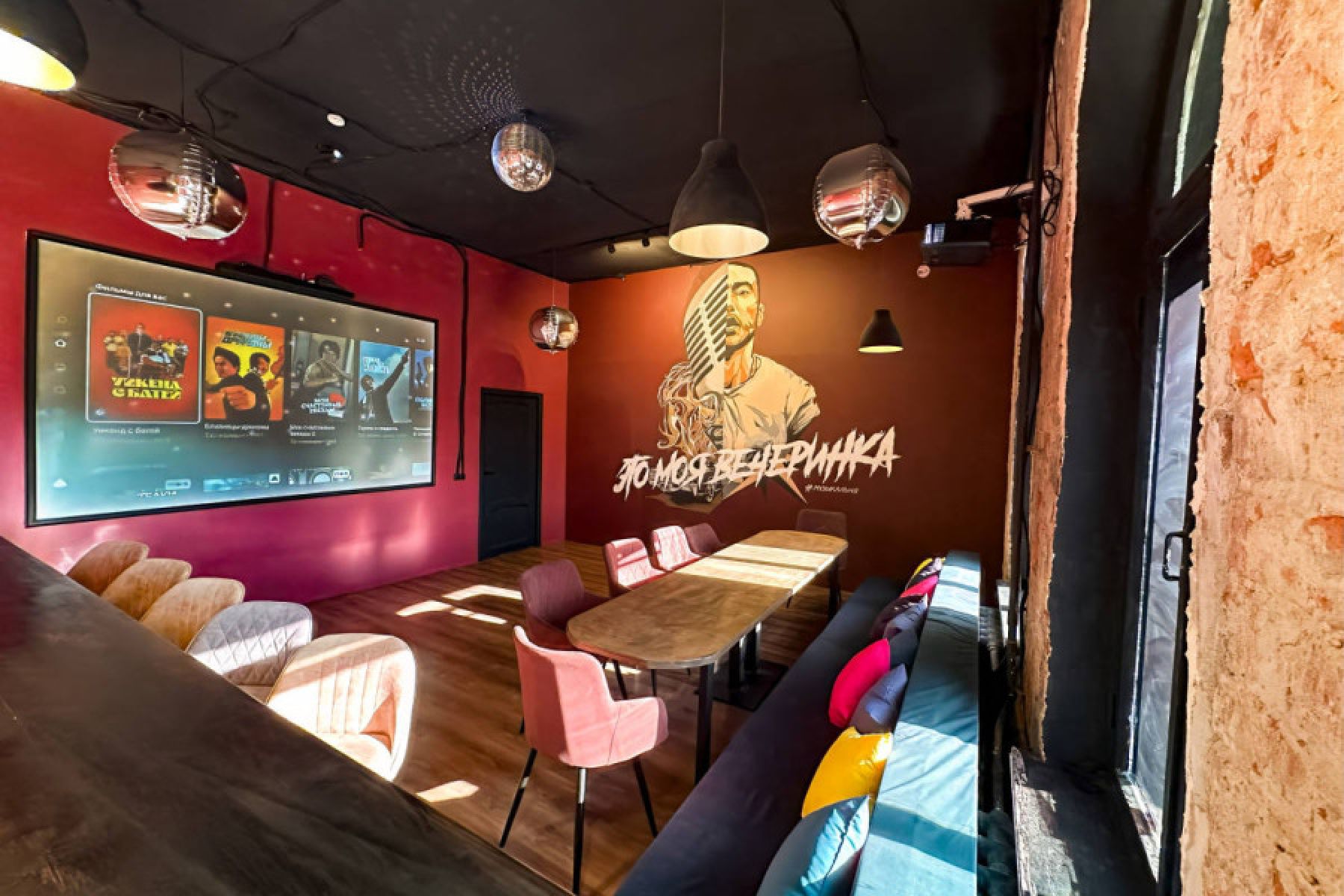 Просторная барная стойка, караоке с двумя беспроводными микрофонами, аудиосистема и микшер. Мини-холодильник, высокоскоростной Wi-Fi, микроволновка.