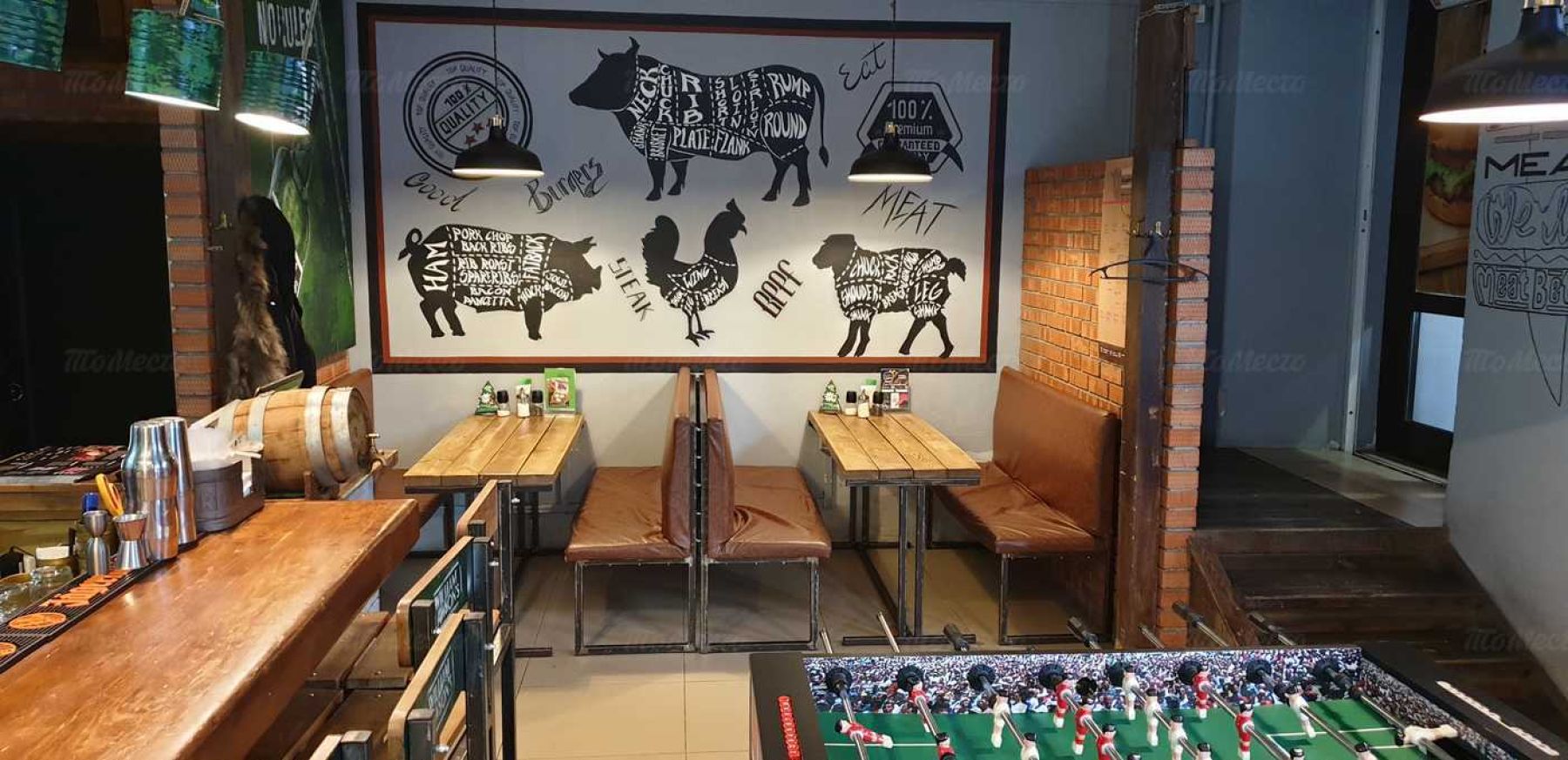 Это уютное заведение предлагает посетителям классические и альтернативные стейки, свинину на углях и другие блюда.