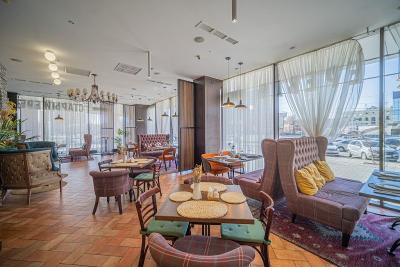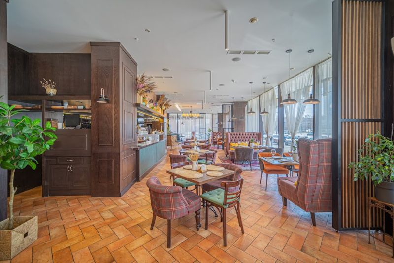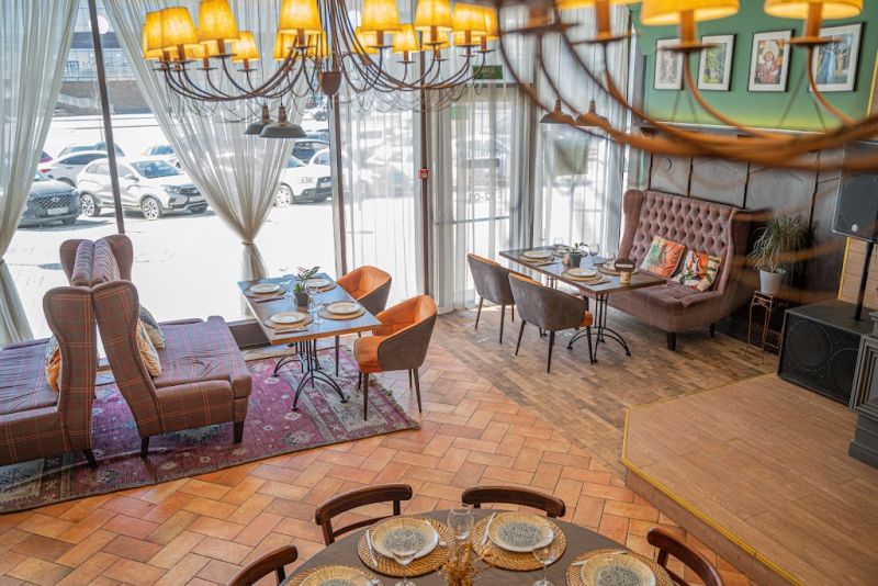 Интерьер заведения выполнен в классическом стиле, что создаёт атмосферу уюта и тепла.