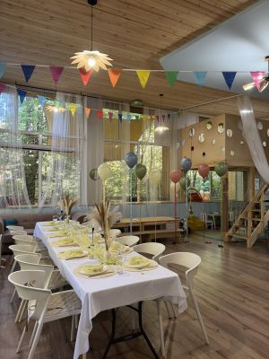 Уютная атмосфера, фотозона, столы и стулья на 45 человек, кухня, оборудованная всем необходимым, игровая на чердаке. У нас можно провести праздник, концерт, мастер-класс, выпускной, гендер пати, встречу мам и многие другие теплые праздники! У нас своя анимация, интересные мастер-классы, шоу программы, кейтеринг, шары, организация мероприятий под ключ.