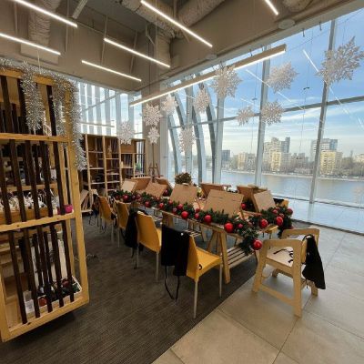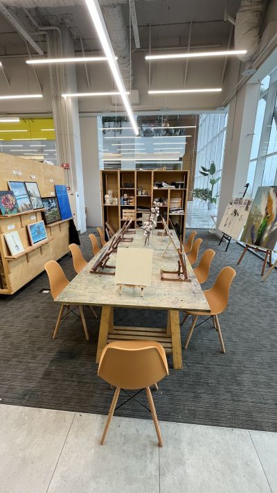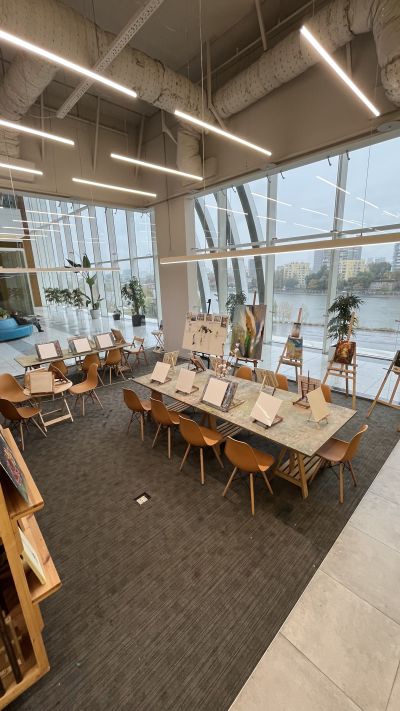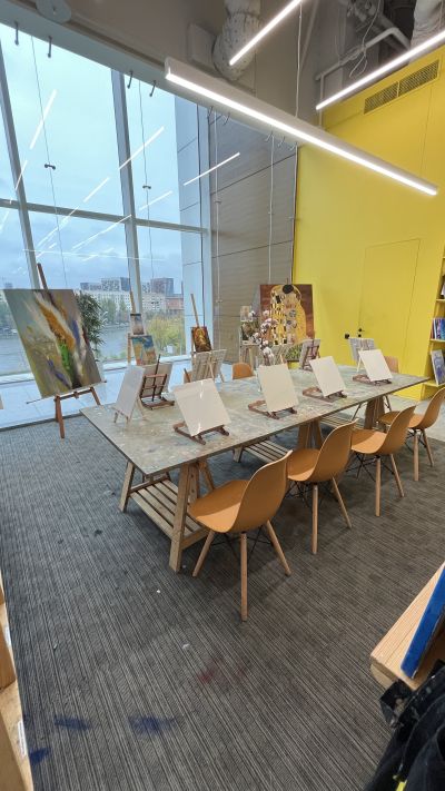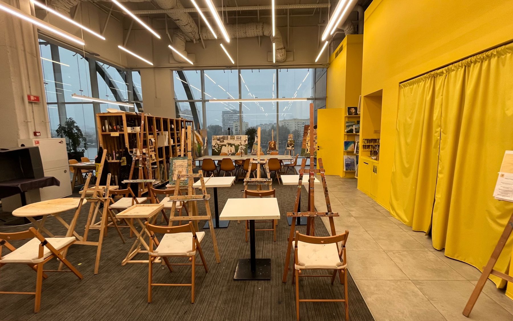 Особую творческую атмосферу создают художественные принадлежности, мольберты и много картин. Идеально для проведения арт-вечеринок, творческих мастер-классов, сеансов арт-терапии и нейрографики, лекций, неординарных корпоративов и дней рождений для детей и взрослых.