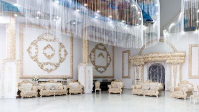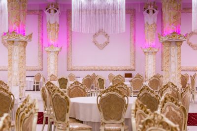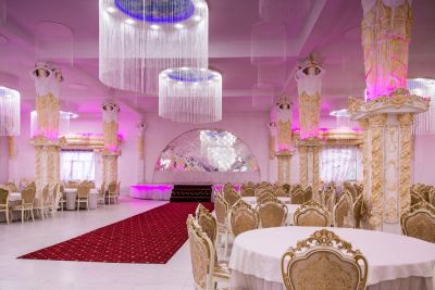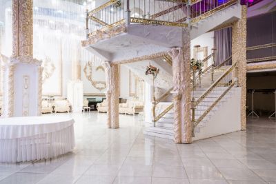 Здесь предусмотрено всё для того, чтобы сделать мероприятие по-настоящему уникальным: собственная кухня, возможность организовать фейерверк, изысканный дворцовый интерьер и возможность приносить свой алкоголь. Можно принести фрукты или безалкогольные напитки. Расположен за городом, в живописном месте. Предусмотрена выделенная парковка.