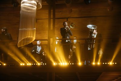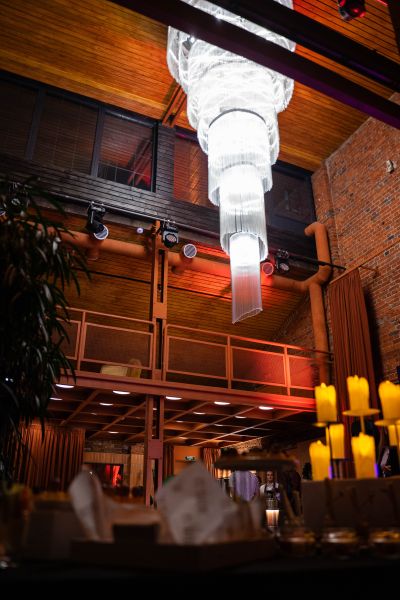 В лучших традициях мы бережно переосмыслили заводское прошлое зала с сохранением ключевых элементов индустриального стиля. Высокие потолки и панорамные окна наполняют помещение естественным светом и визуально расширяют пространство. Центром притяжения локации является роскошная многоступенчатая раритетная люстра, изящно вписанная в актуальный контекст.