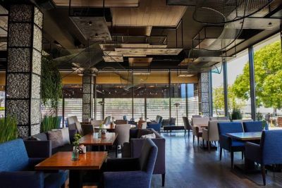 Для удобства гостей – выделенная парковка, зона отдыха и музыкальное оборудование. Для детей оборудована игровая зона и есть специальное детское меню. Зал оснащен проектором и TV-экранами, а также возможны услуги фотографа, живой музыки и праздничного оформления.