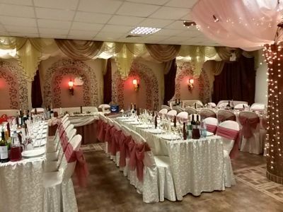 Оборудована сцена, есть музыкальное оборудование, TV-экраны и уютная велком-зона. Дополнительно можно заказать услуги фотографа, видеографа, ведущего, живую музыку и праздничное оформление, а также устроить фейерверк. Удобная парковка и организация выездных регистраций обеспечивают комфортное пребывание.