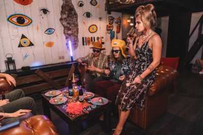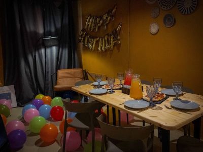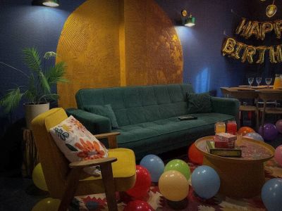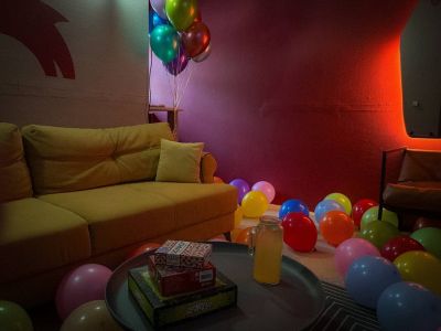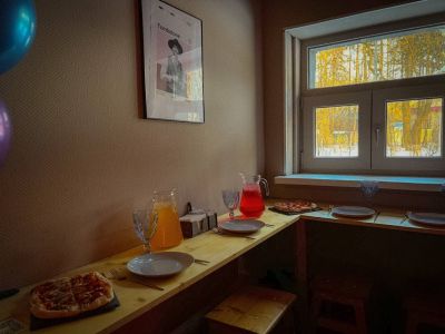 В лофте можно шуметь 24/7. Яркость света регулируется в каждой зоне. На втором этаже есть приставка. Можно со своей едой, напитками и кальянами, пробкового сбора нет. На кухне есть чайник, микроволновка и холодильник.
