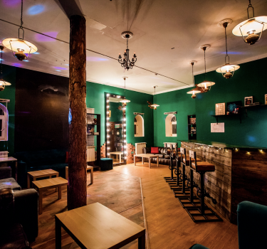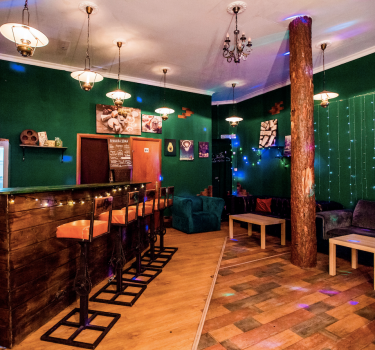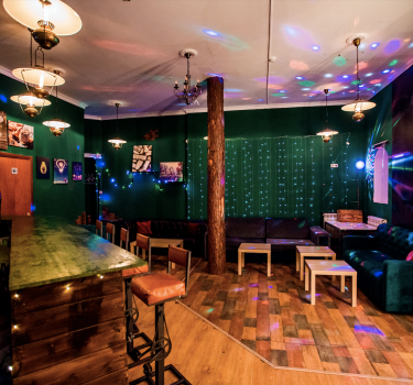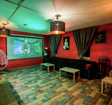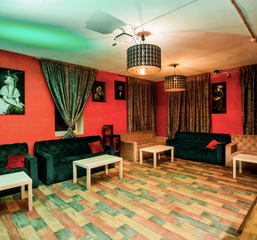 Зал выполнен в стиле Парижа 60-х годов и условно поделен на 3 зоны: входная, гостиная и кухня. Так же зал оборудован отдельной гримерной зоной за стеклянной перегородкой.