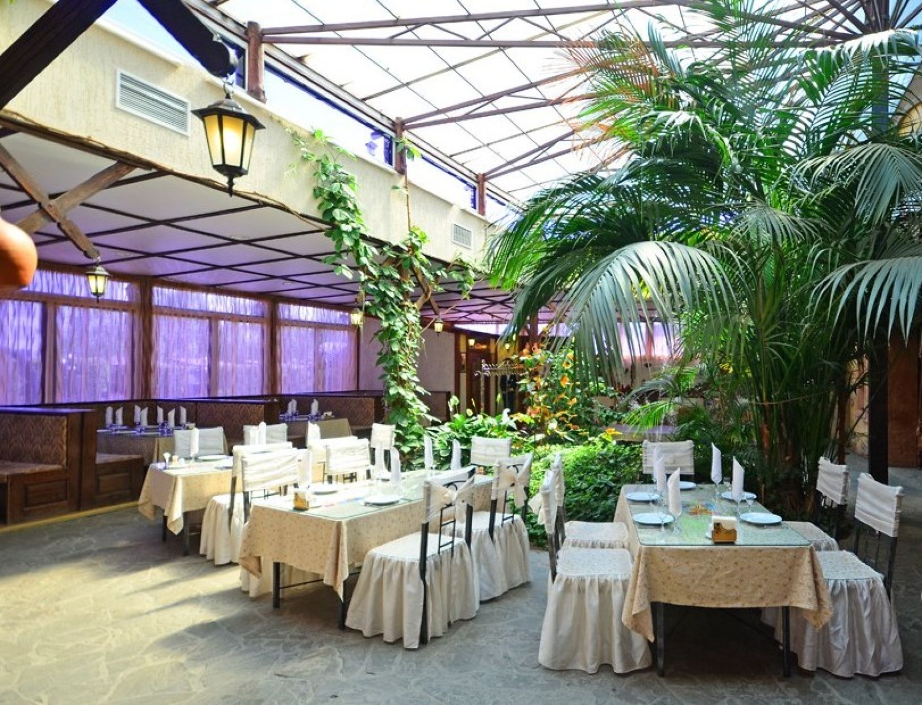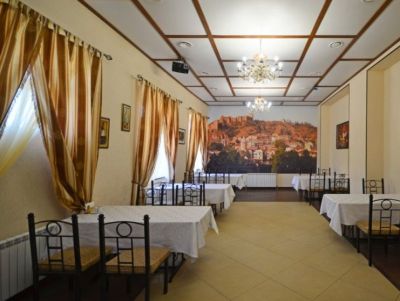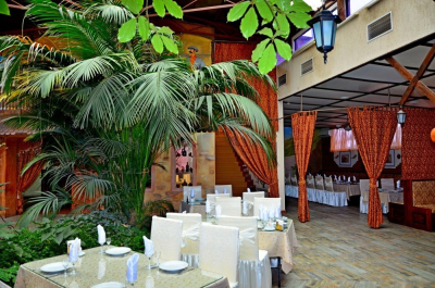 Зал подходит для проведения ярких и запоминающихся событий. В меню представлены блюда европейской и кавказской кухни, а также предлагается возможность принести собственные напитки. Оборудована просторная парковка.