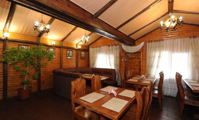 Меню включает блюда кавказской и русской кухни, от классических рецептов до авторских изысков. Зал рассчитан на 50 человек для банкетов и до 70 для фуршетов.