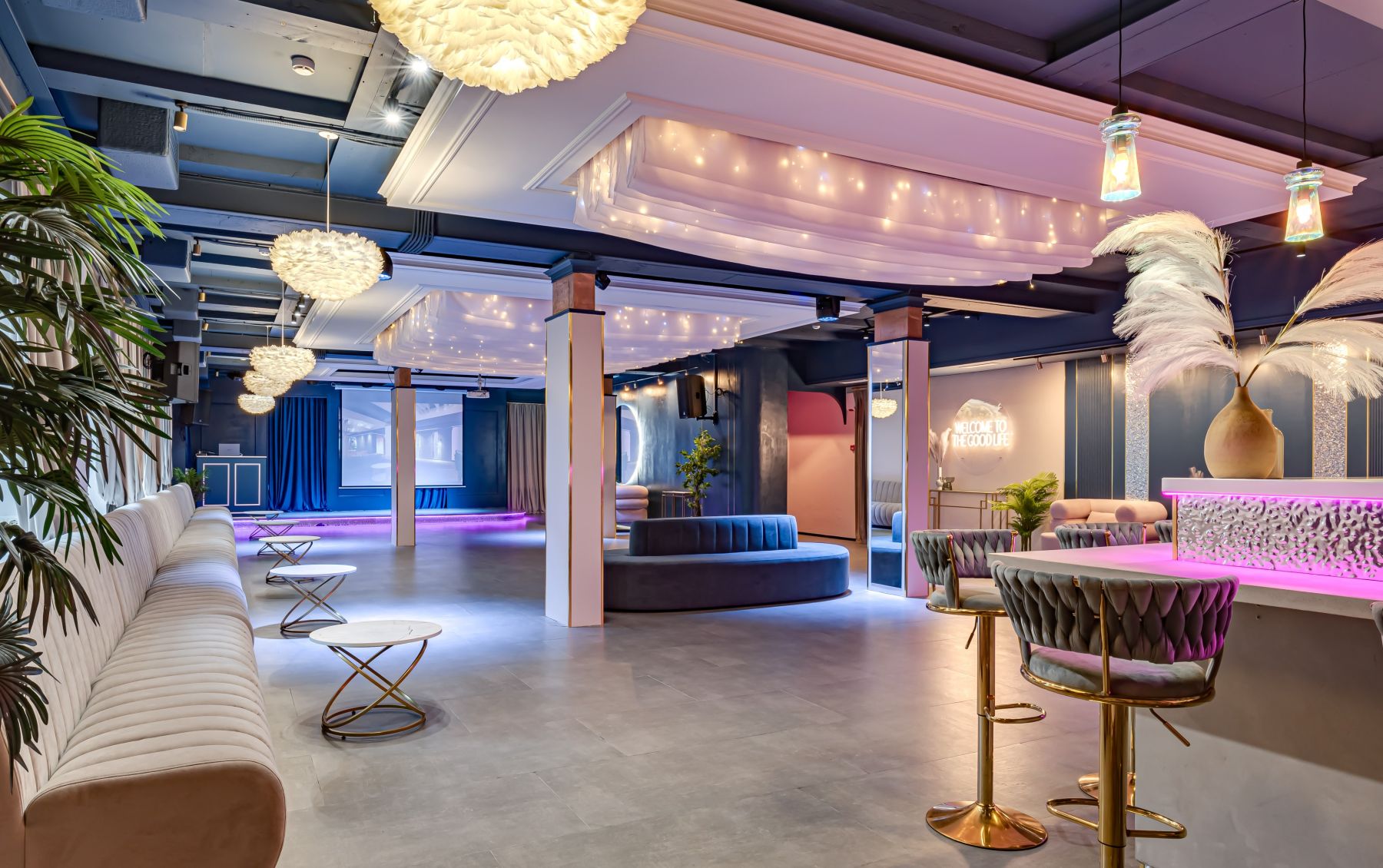Позволяет одновременно обслуживать до 100 гостей. Оснащен современным оборудованием для световых и звуковых эффектов.