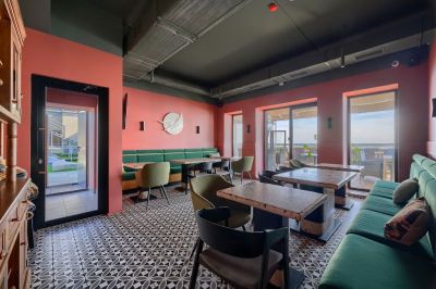 Техническое оснащение включает проектор, экраны для видео-трансляций и бесплатный Wi-Fi. Оборудована велком-зона.