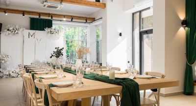 В меню представлены блюда европейской кухни, богатая карта алкогольных напитков. Разрешено приносить свой алкоголь по предварительному согласованию. Пространство оснащено сценой, музыкальной аппаратурой, проектором и TV-экранами, Wi-Fi. Для организации праздников доступны разнообразные услуги: живая музыка, диджей, ведущий, оформление пространства и заказ тортов. Возможна выездная регистрация.