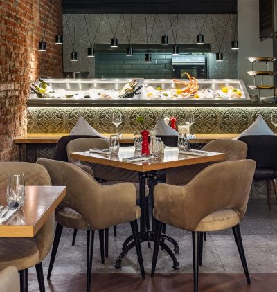 Ресторан «Сицилия» — это уютный уголок Италии в Советском районе, рядом с Театральной площадью. Пространство оформлено в средиземноморском стиле с мягким освещением, пастельными оттенками и аквариумом с живыми морепродуктами, который придаёт интерьеру особый шарм.