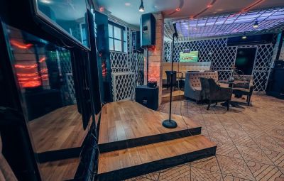 В зале есть сцена, проектор, TV-экраны и музыкальное оборудование. Велком-зона и Wi-Fi сделают пребывание гостей ещё более комфортным.
