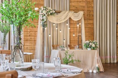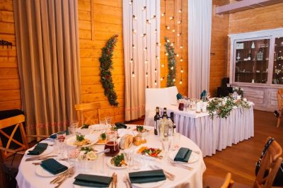 Для создания неповторимой атмосферы можно воспользоваться услугами живой музыки или диджея. Также доступны проектор, TV-экраны и велком-зона, где гости могут расслабиться и насладиться предстоящим праздником.