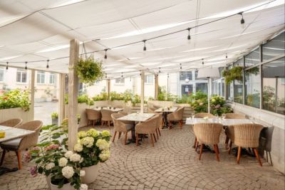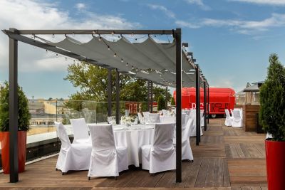 Для тех, кто предпочитает проводить мероприятия на свежем воздухе, есть веранда или терраса. С неё открывается прекрасный вид на реку и городские достопримечательности.
