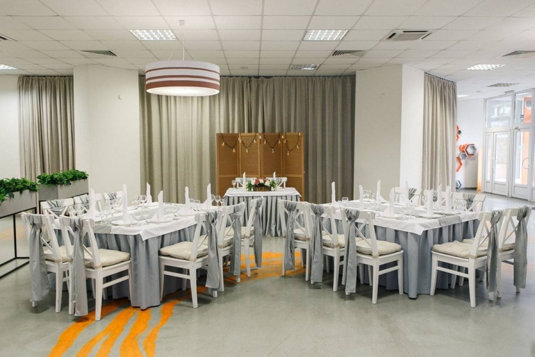 В банкетном зале есть кондиционер, который создаёт комфортные условия для гостей в любое время года. Команда профессионалов возьмёт на себя все организационные вопросы, чтобы вы могли отдохнуть на своём мероприятии.