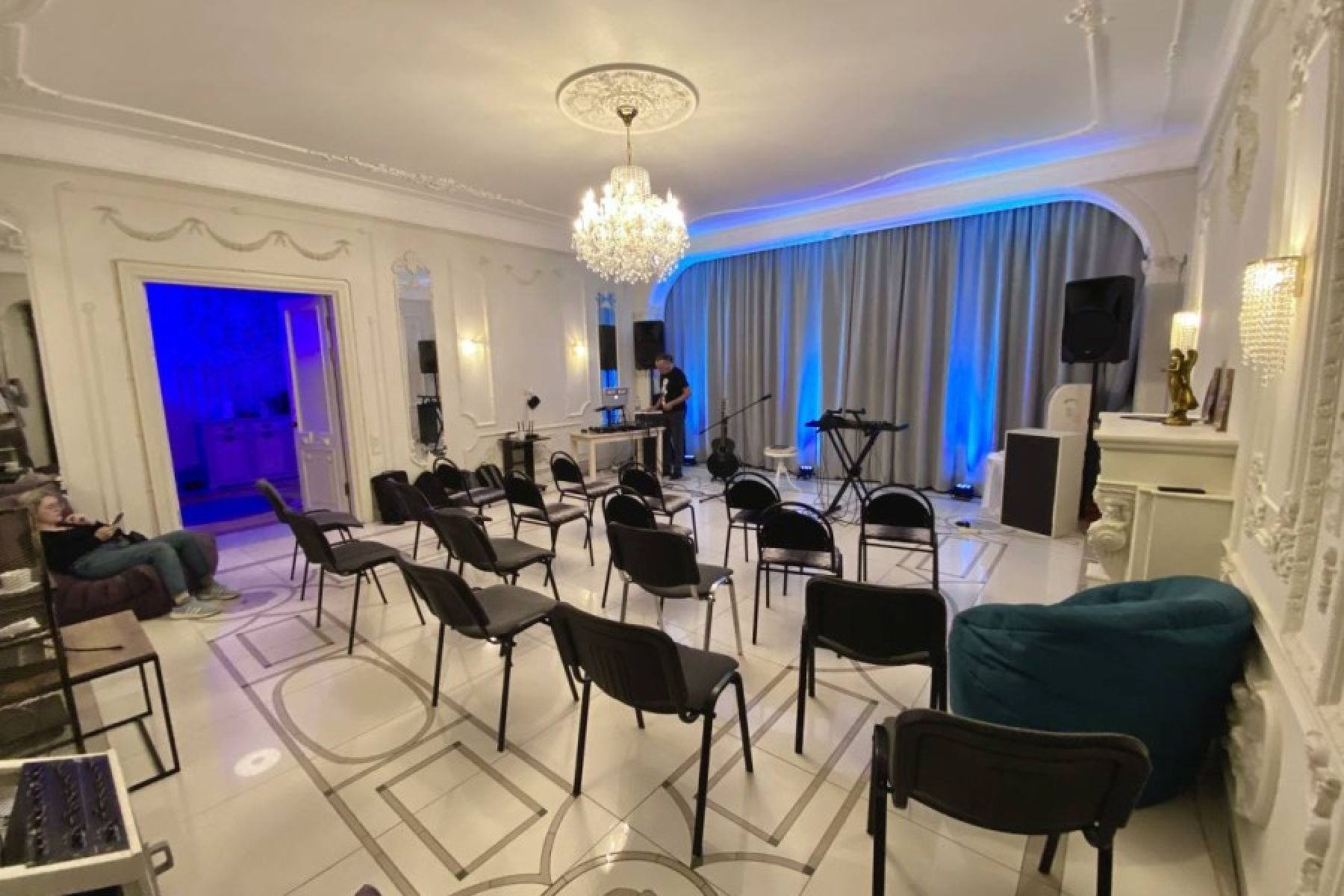 Белый зал можно использовать не только для вечеринок, но и для более серьёзных мероприятий: камерных концертов, лекций, обучающих семинаров, интервью и праздников.