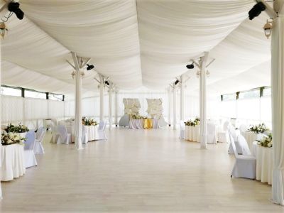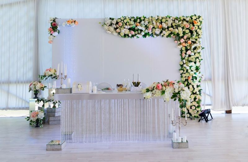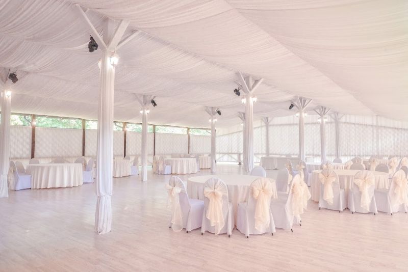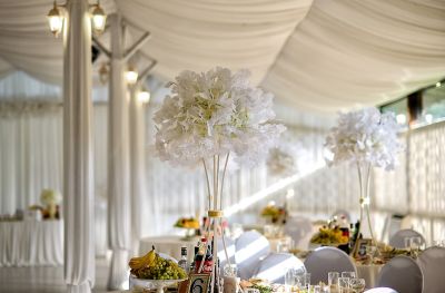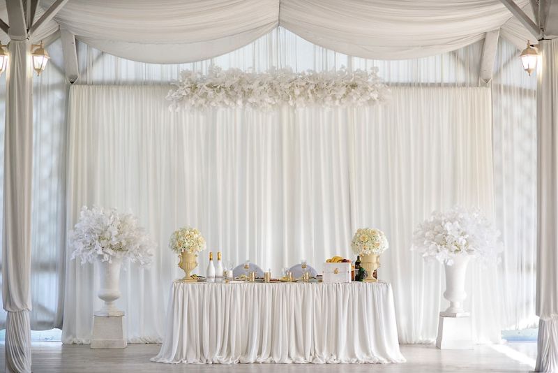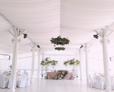 Залы, оформленные в белоснежных тонах, способны воплотить в жизнь любые дизайнерские задумки и стилистические решения.