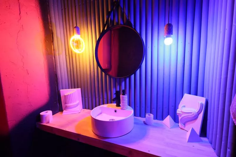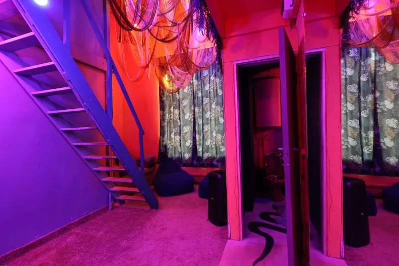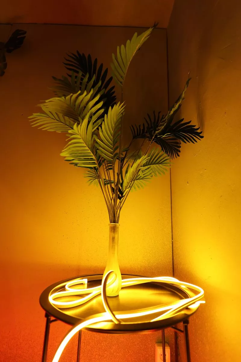 - **Атмосфера:** Стильный интерьер с тропическими элементами и теплым освещением.