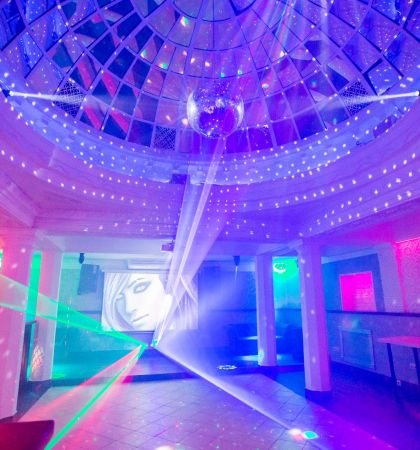 ▪ Светомузыка. диско-шар и световые лучи создающие атмосферу дискотеки.