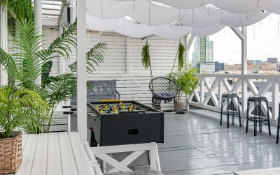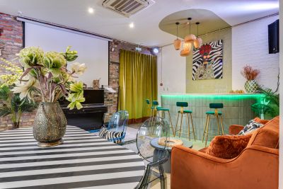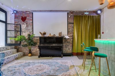 ➖ 194 кв.м, вместимость до 80 человек. Стильные мягкие диваны, барная стойка, оборудованная кухня (холодильники, посуда на 80 персон, фильтрованная вода).