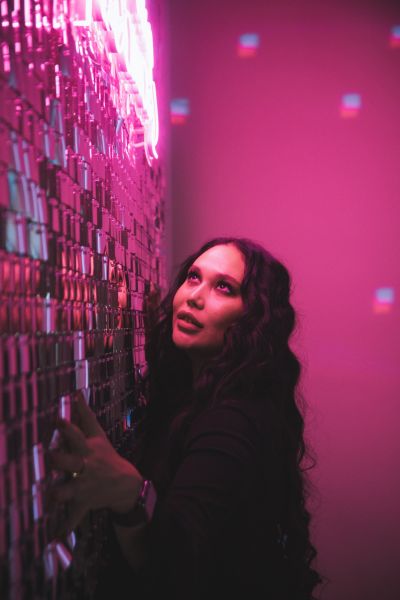 - Фотозона из пайеток с неоном — идеальный фон для ярких фото!