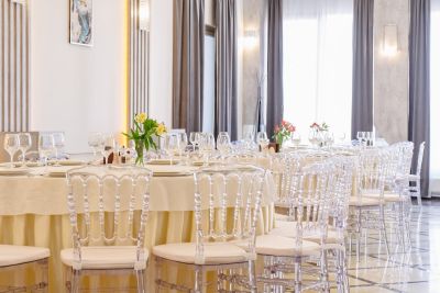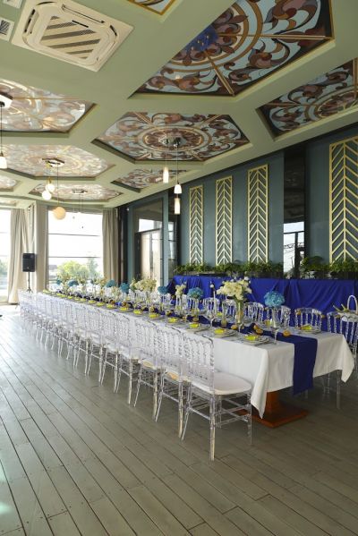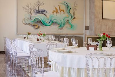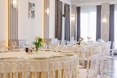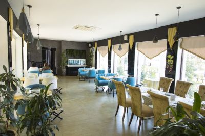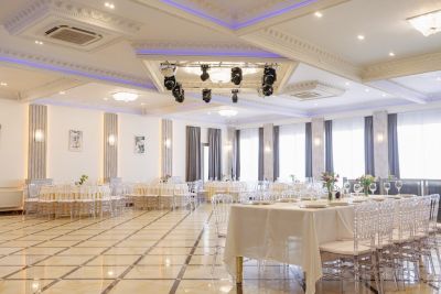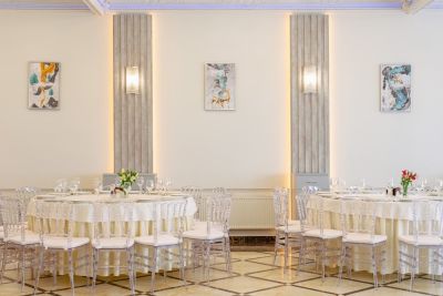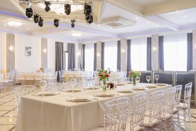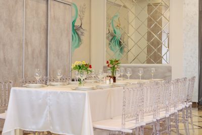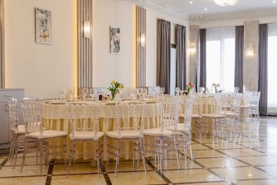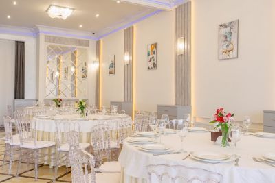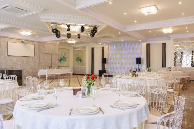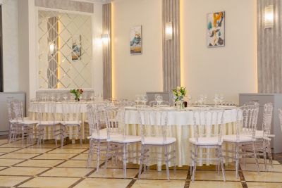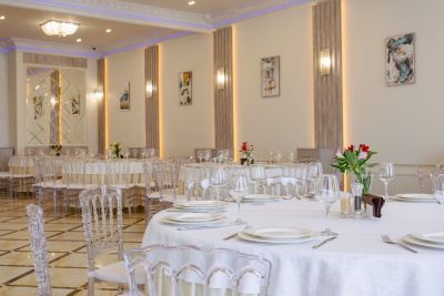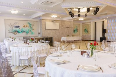 Просторный банкетный зал способен вместить большое количество гостей. Велком-зона с удобными диванами и креслами создаёт атмосферу уюта и комфорта. Здесь же можно воспользоваться бесплатным Wi-Fi и подключить свои устройства к проектору или TV-экранам, чтобы насладиться просмотром фильмов или презентаций.