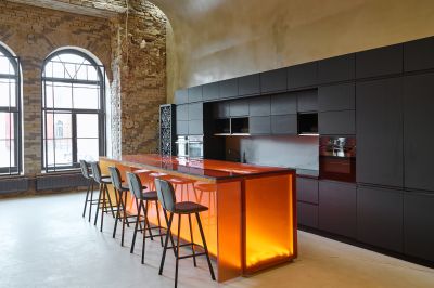 Стильный лофт в черно-белой гамме с люстрами и отдельным входом на первом этаже. Зал станет идеальной площадкой для вашего торжества.