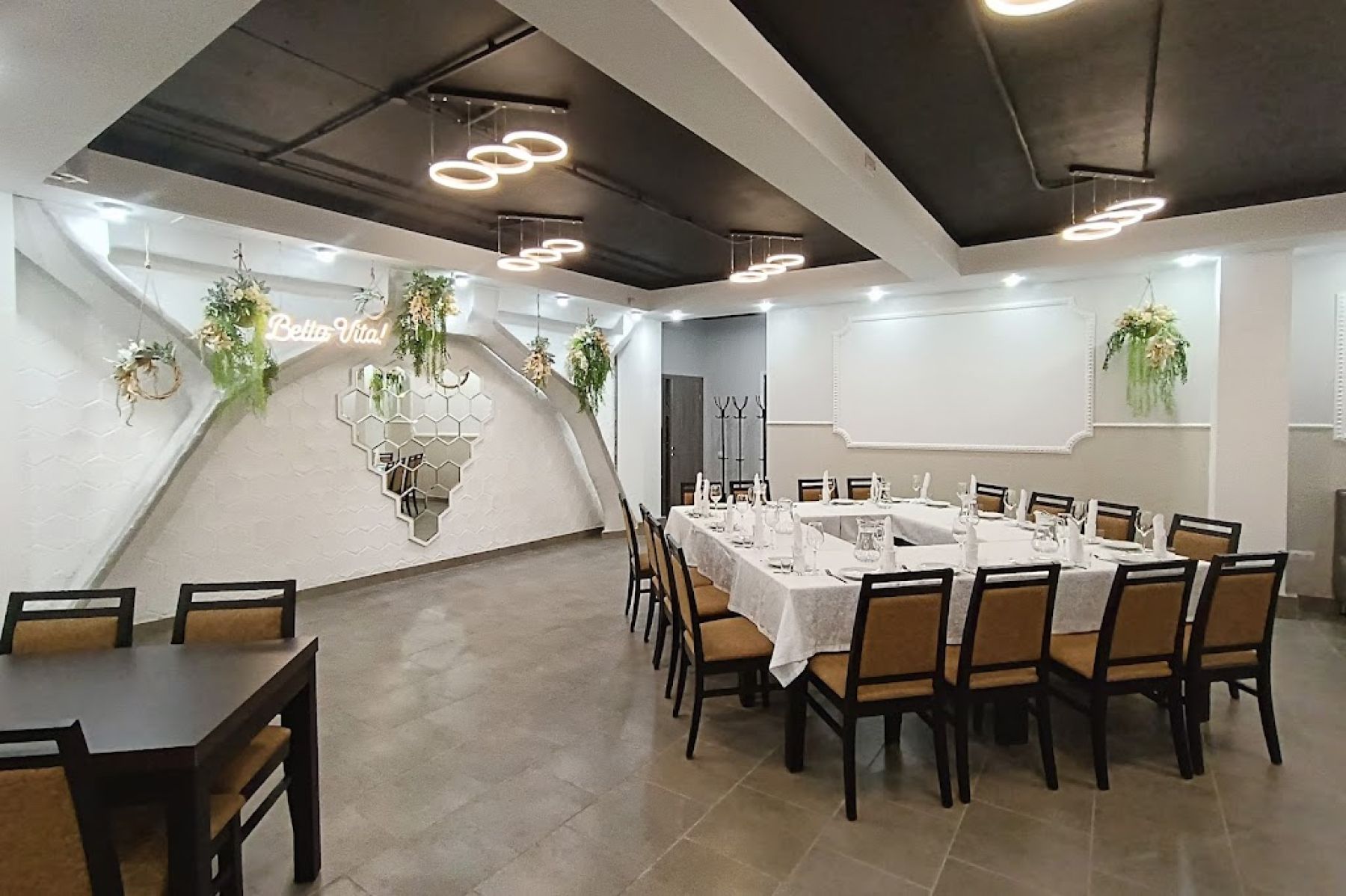 Ресторан "Кантанелло" предлагает всё необходимое для проведения мероприятий. Здесь есть собственная кухня, где готовят блюда европейской, итальянской и русской кухни. Есть возможность принести свой алкоголь.