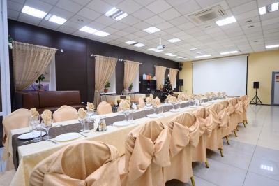 Для тех, кто планирует провести мероприятие, банкетный зал станет идеальным местом. Здесь есть всё необходимое для организации свадьбы, юбилея или корпоративного вечера: музыкальное оборудование, проектор, TV экраны. Можно пригласить DJ, ведущего или музыкантов для живой музыки.