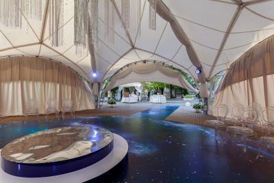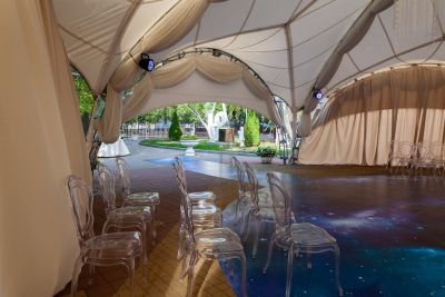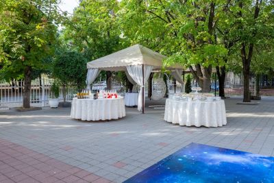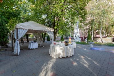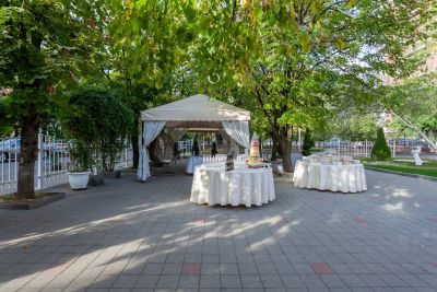 В ресторане есть всё необходимое для проведения банкетов: банкетный зал, сцена, проектор, TV-экраны. Для гостей предусмотрена welcome-зона, бесплатный Wi-Fi и возможность размещения в гостинице.