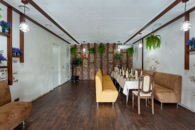 Ресторан предлагает европейскую и кавказскую кухни, которые порадуют даже самых взыскательных гурманов. А если вы хотите удивить гостей чем-то особенным, можно привезти свои фрукты и безалкогольные напитки.