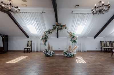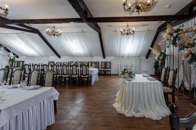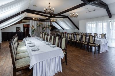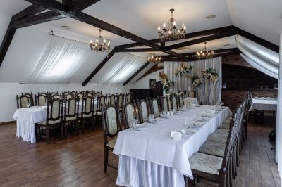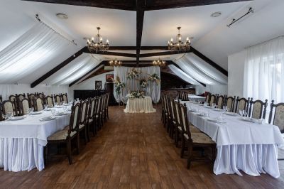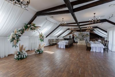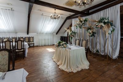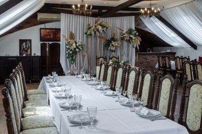Банкетный зал идеально подходит для проведения мероприятий любого формата. Здесь есть всё необходимое для организации свадьбы, юбилея или корпоративного вечера. Можно воспользоваться помощью в проведении мероприятия, а также пригласить фотографа, видеографа, DJ, ведущего или музыканта.