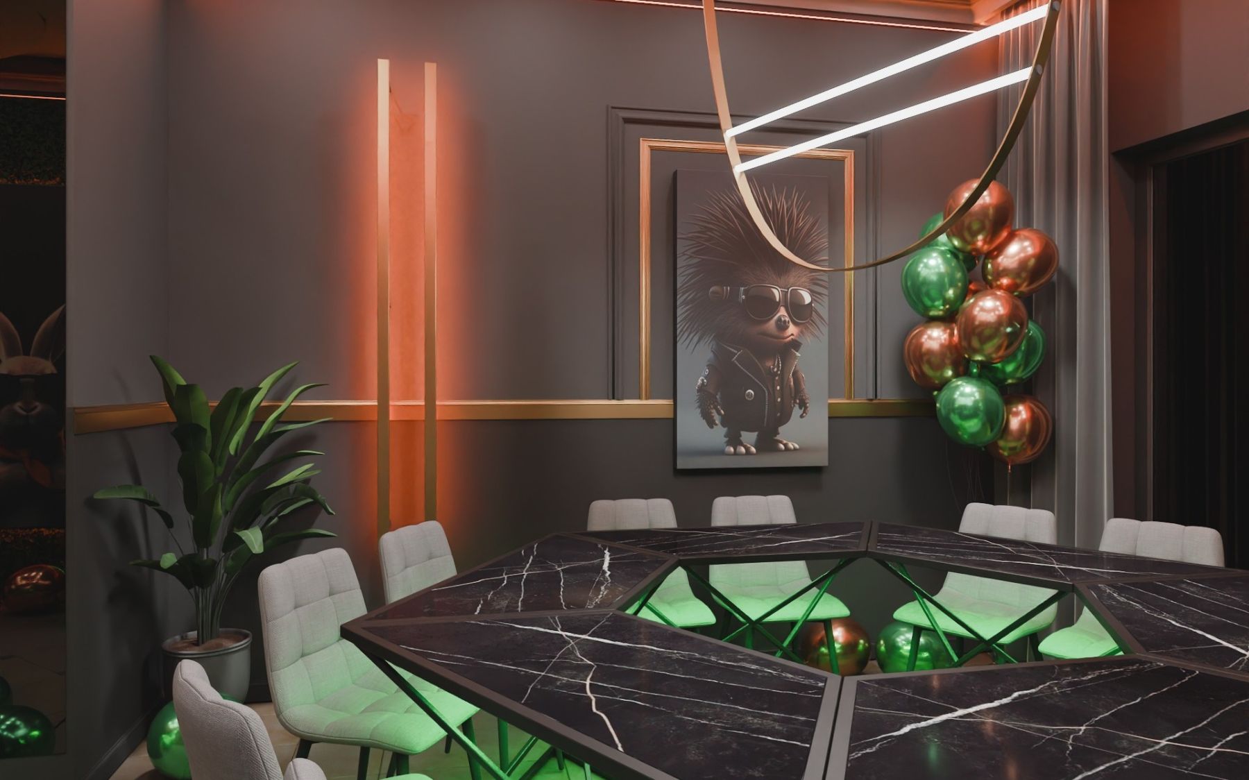 Сотрудники: —оформят лофт в соответствии с концепцией праздника; —предоставят личного официанта, кальянщика, DJ и бармена; —украсят лофт воздушными шарами и декорациями; —организуют кейтеринг по вашему вкусу, помогут оформить доставку и встретят курьера.