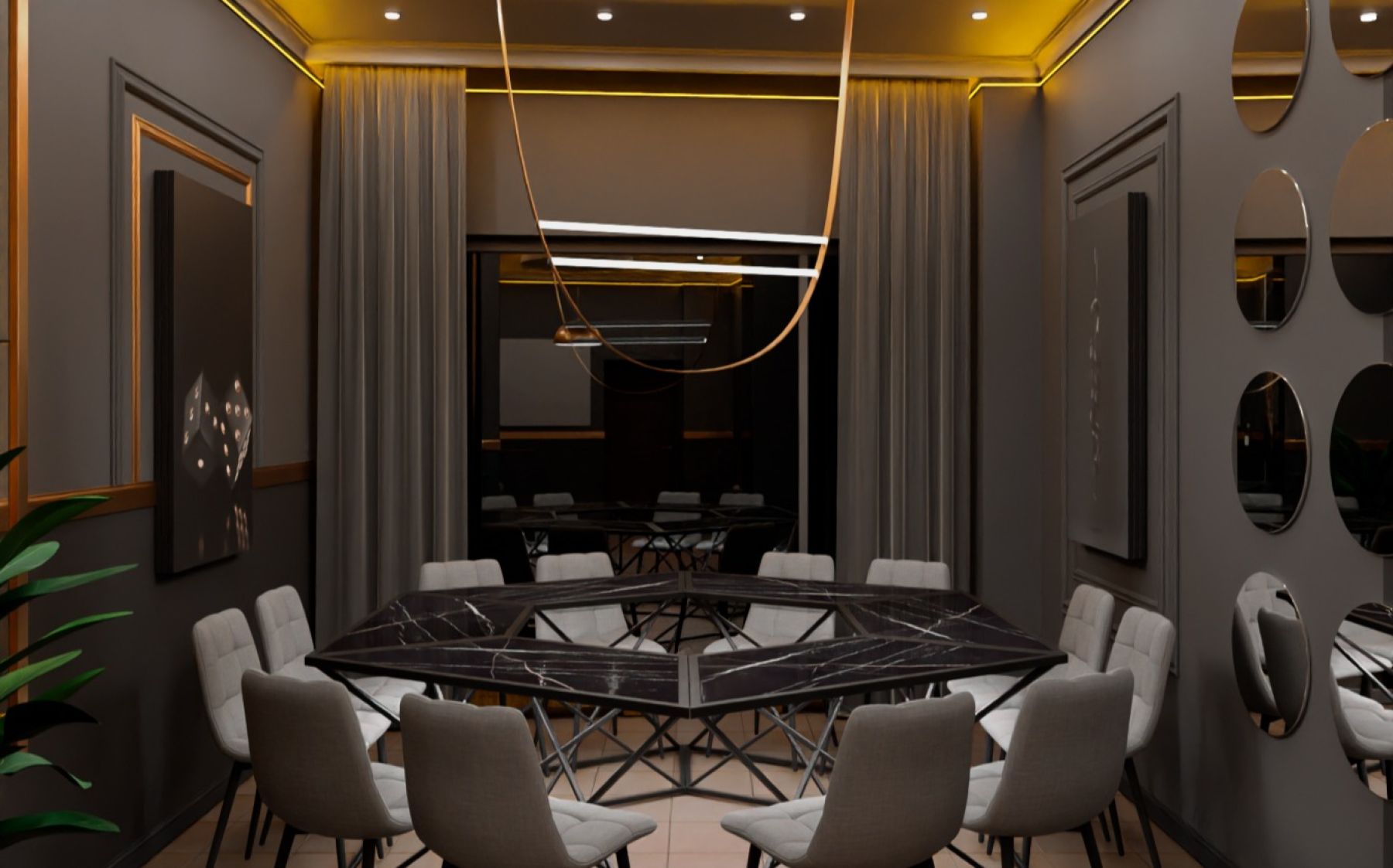 2. Зона общего стола с удобными мягкими креслами