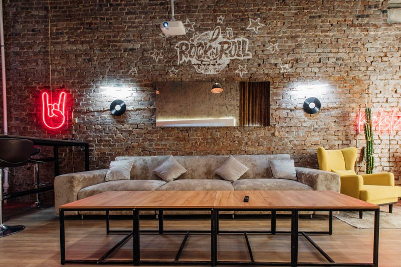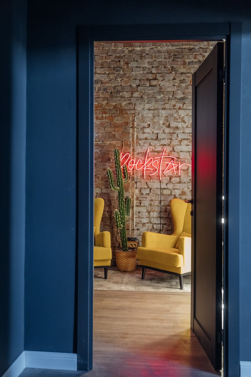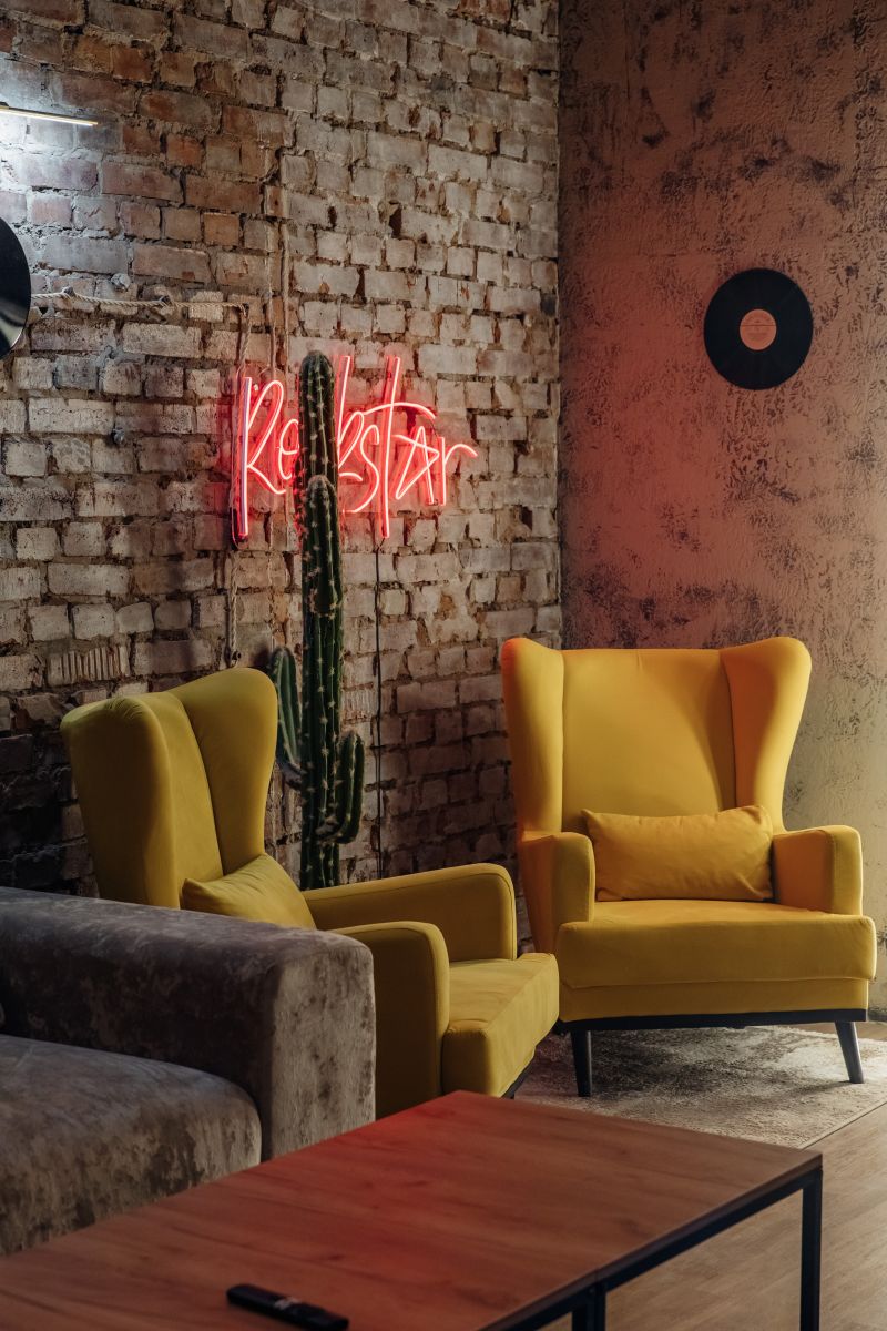 Этот зал — сама дерзость и энергия. Грубые кирпичные стены, пронзительный красный неон и аутентичные рок-элементы создают неповторимую атмосферу музыки и свободы. Здесь нет места полумерам — только настоящий уличный стиль и дух бунтарства.