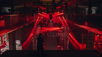 Интегрированная лаерная конструкция за сценой. Интегрированный свет и вся инфраструктура,