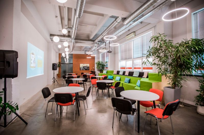 Вариативная мебель: столы для банкета и фуршета, стулья для лекций и тренингов. Идеально подходит для конференций, воркшопов, тренингов, презентаций, нетворкингов, бизнес-игр, корпоративов и вечеринок.
